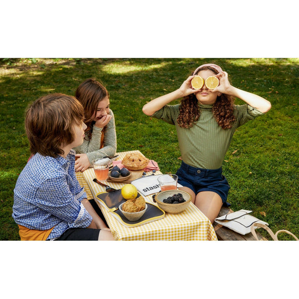 Stylish, reusable food bag for kids and adults. Safe and non-toxic. Fully machine washable and easy to clean. Rinseable, tested food-safe lining. Sustainably and ethically made with organic + recycled...
