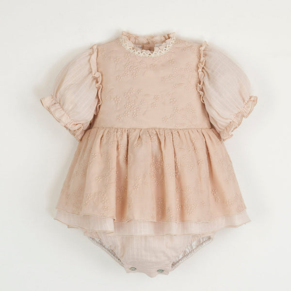 This dreamy, midi-length dress features a layered tiered skirt, full puffed sleeves, and a delicate button-back closure, perfect for your special occasions!Size 2y include a coordinating bloomer.Featured in our 'dusty...