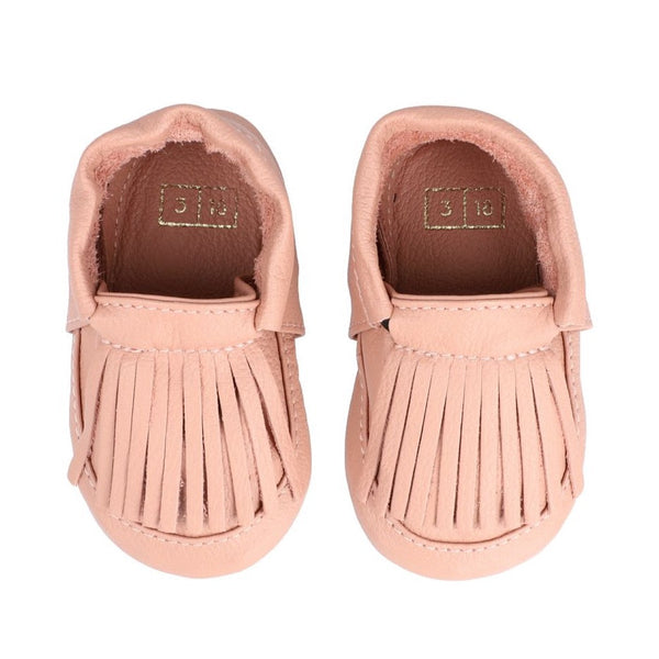 Leather color : Rose Dawn Soles : Sizes NB thru 3 come with a soft leather sole, and sizes 4 thru 6 come with a rubber grip sole.