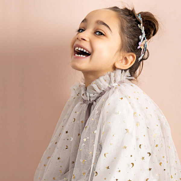 Wave your magic wand and imagine the moon and stars appearing! In gorgeous opal glitter fabric adorned with gold ribbons and dusky peach stars, this is the perfect wand for...