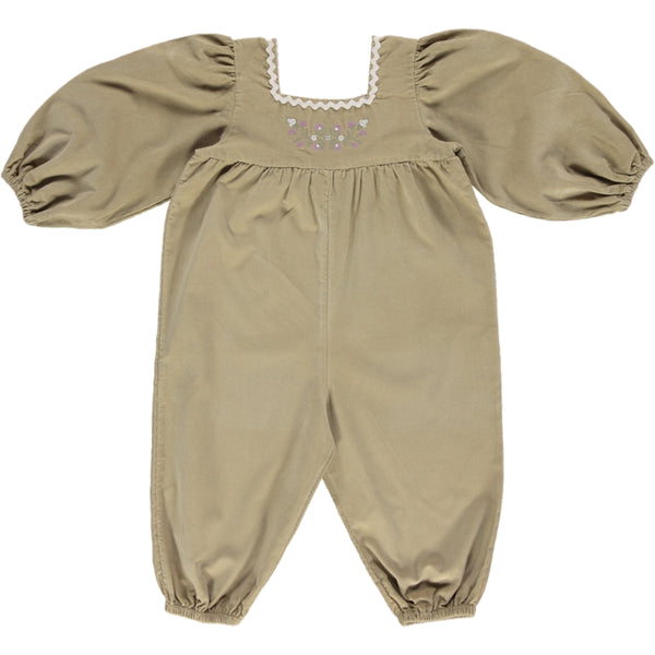 The Teddy Romper has a loose fit with long sleeves. its top part is made of muslim and has little ruffles all along front and back.It has stitched straps *along...