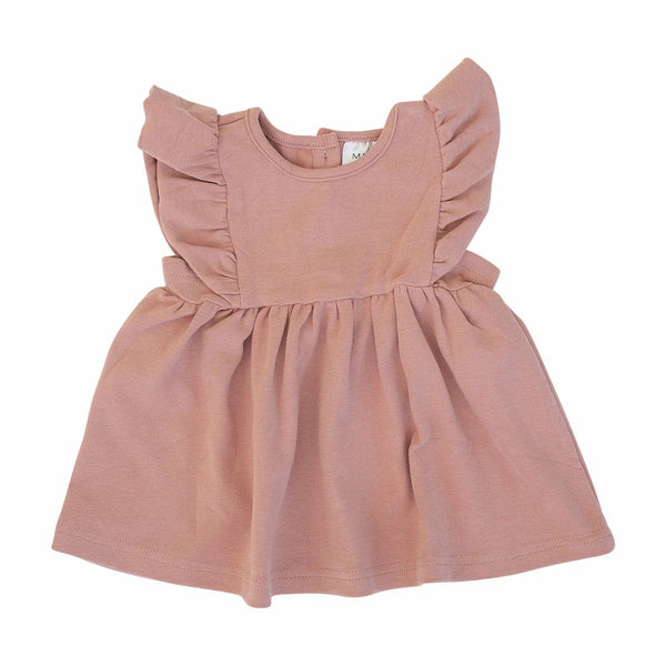 This is a linen cotton short sleeve dress with wood buttons! Sizes 0-3 up to 4T. Such a cute, simple, dress for your baby. Wash in cold water, Hang dry. 40% Linen...