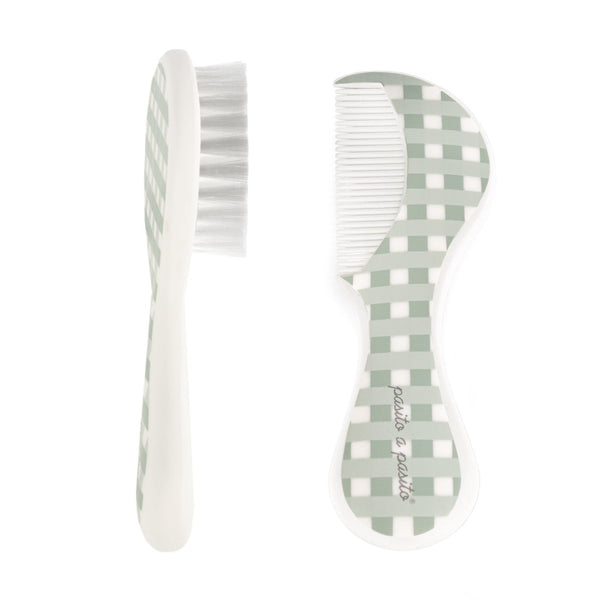 Toilet bag in printed simileather with pink and grey gingham. This small toilet bag is perfect to carry all of baby’s hygiene products. It can be washed by hand or...
