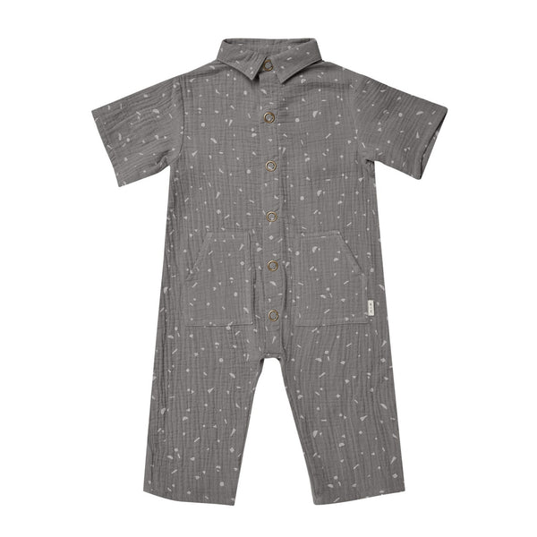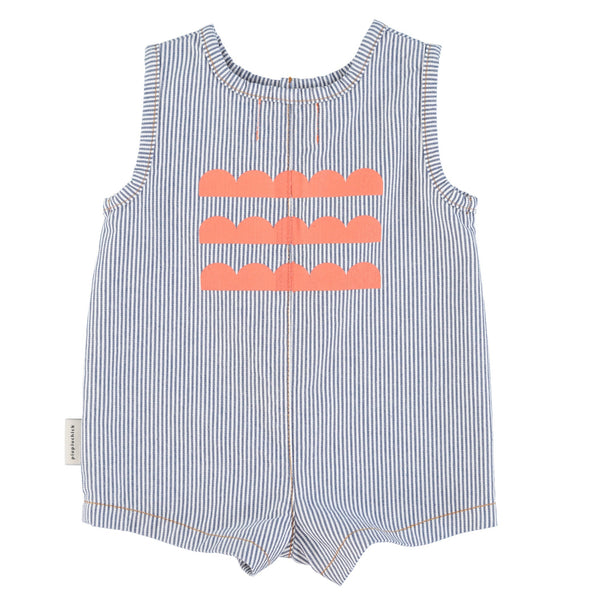 Waffle Hooded Bubble Romper | Charcoal Stripe