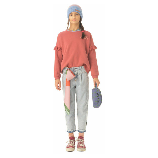 Unisex sweatshirt, multicolor print on the back. "More Amore" Little print on the front. Carded organic cotton fleece.