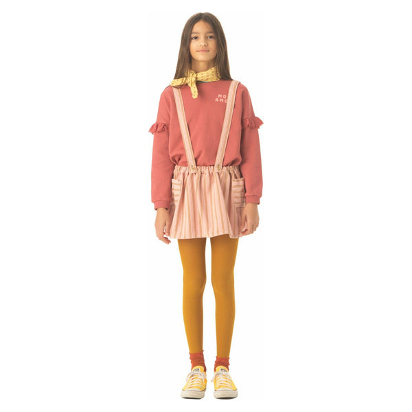 Mini skirt with adjustable straps and elasticated waist for pleated effect. Patch pockets with green logo embroidery.