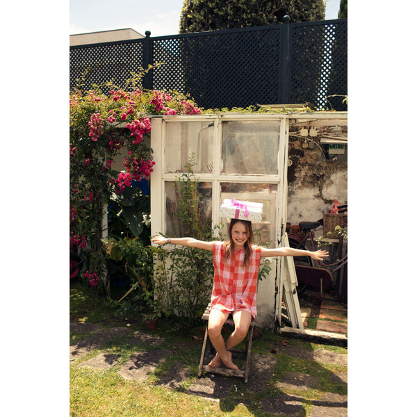 Short sleeveless jumpsuit with surplice neckline, front patch pockets and back regulator. Detailed with "vacay" print aon the back. Lilac & red checkered | oxford cotton. Made of: 100% Co. Made...