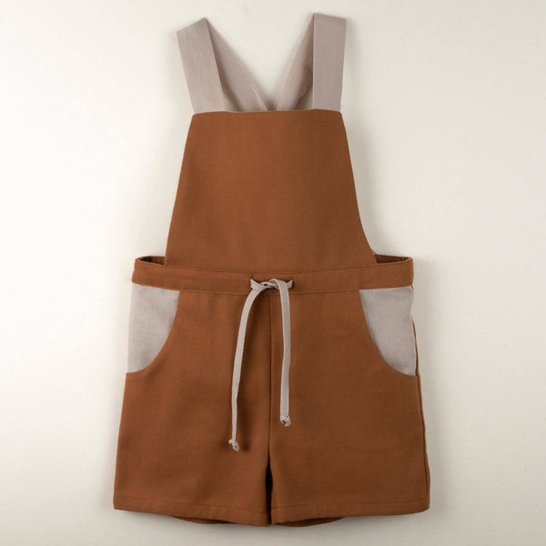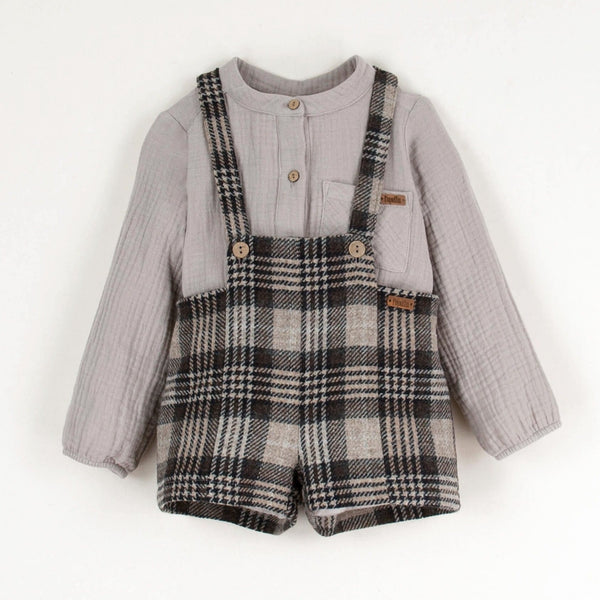 Shirt Style Romper Suit With Dungarees Set | Taupe