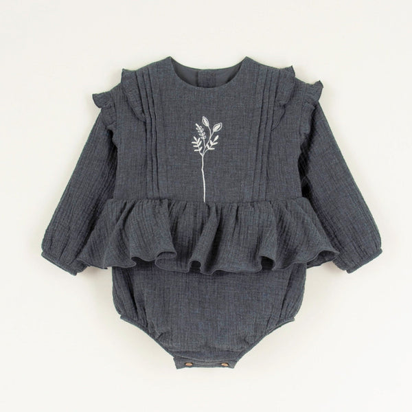 Embroidered Romper Suit With Pintucks | Dark Grey