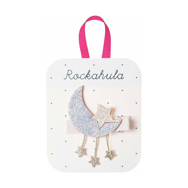Shoot for the moon, and land amongst the stars! Our gorgeous opal moon and star is sat upon a pink grosgrain ribbon wrapped salon bar clip. With a sweet trio of...