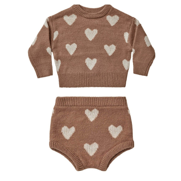 Knit Pullover: his pullover sweater is made of the softest jacquard knit. Finished with contrasting ribbed trim at neckline, sleeve openings and bottom opening. Knit Bloomer: This knit bloomer is...