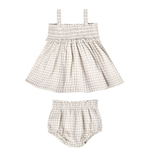 Mae Smocked Top & Bloomer Set | Silver Gingham
