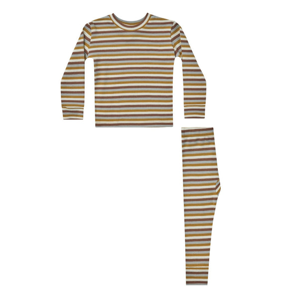 Pajama set includes the softest long sleeve top and leggings with banded cuffs.Featuring our ‘multi-stripe’ all-over pattern.Care:
