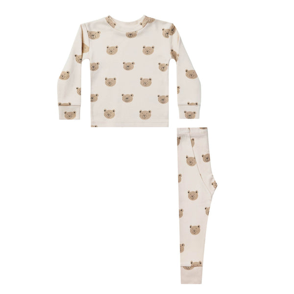 Pajama set includes the softest long-sleeve top and leggings with banded cuffs.Featuring our ‘bears’ all-over print on natural.Care: