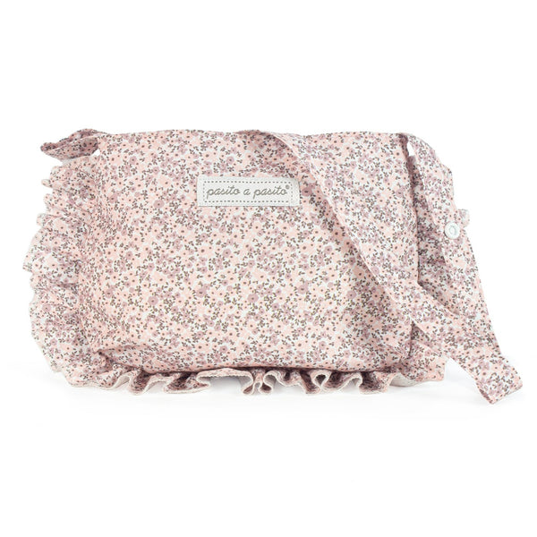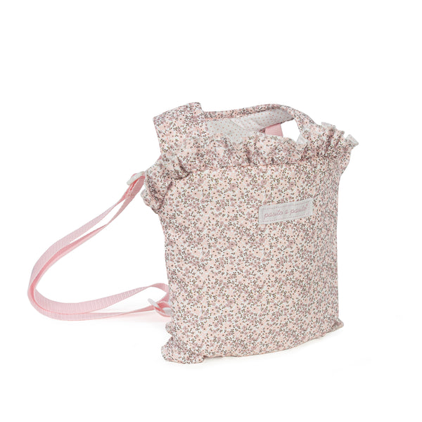 Lili bag with pink flower print, ideal for carrying all the accessories of the dolls for a walk. Can be attached to pushchairs and strollers.
