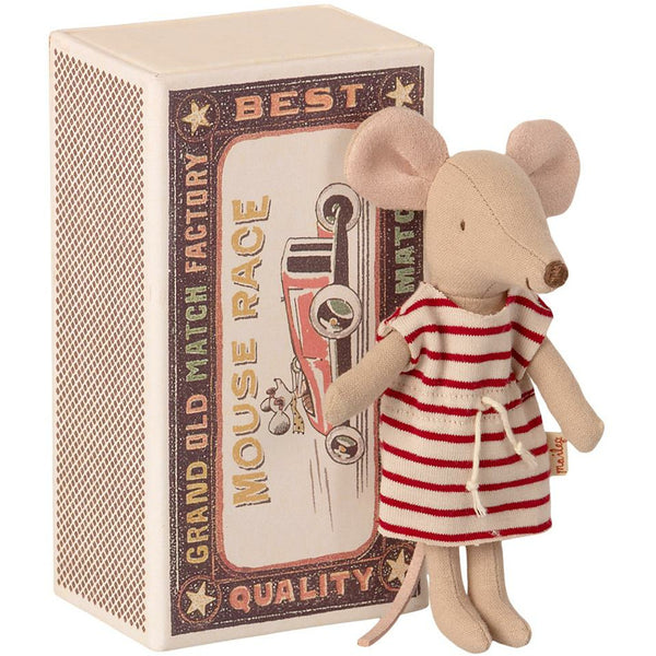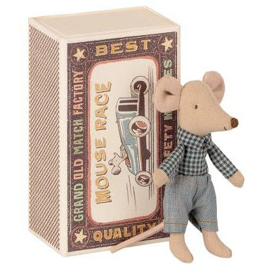 A classic Maileg item. This mouse is ready for hours of play and sleeps tight in a little matchbox. The clothes and bedlinen are made of soft fabrics with unique...