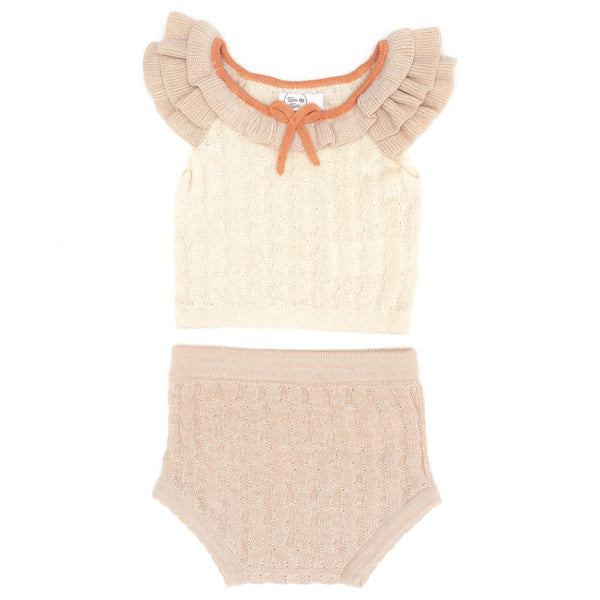 Ribbed Ruffle Top With Bloomer Set | Shell Pink