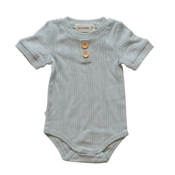 A super comfortable and stylish bodysuit with short sleeves. Made from oh so soft cotton fabric and features two wooden buttons on a faux button placket (these do not function). Made...