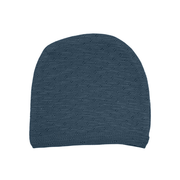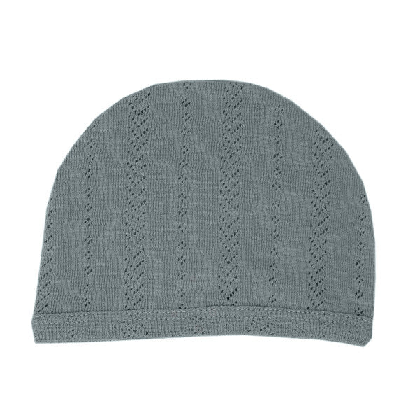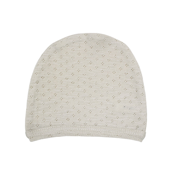 GOTS certified 100% organic cotton. Buttery-soft heathered pointelle fabric with a delicate unisex texture. Fits nice and snug, covering baby's little ears. Pairs perfectly with our pointelle footies and rompers....