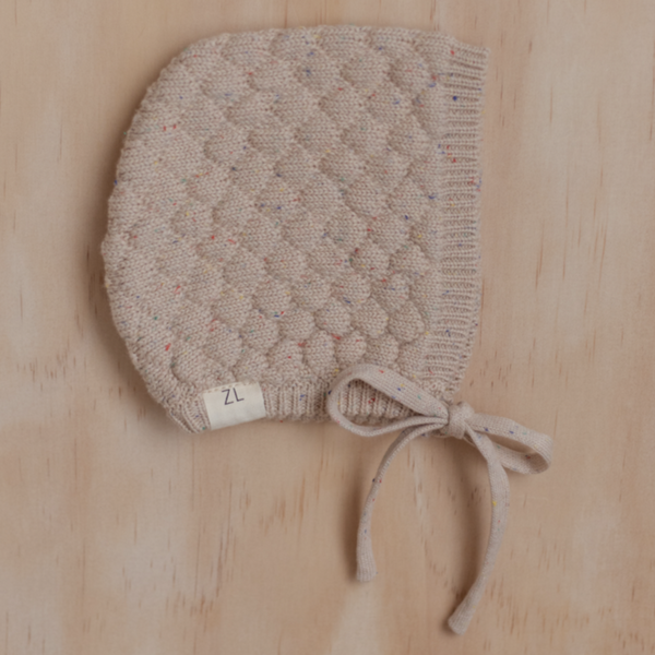 Knitted bonnet with a bubble texture to beautifully complement our delicate knitted romper. Designed to be a timeless keepsake to remember just how teeny, tiny they were. An heirloom piece to pass...
