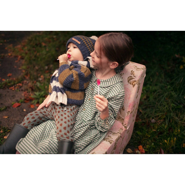 Knotted baby hat in our new soft and stretchy bamboo fabric. Featuring our 'Dash' all-over print on spruce Care: Machine wash cold. Hang to dry. Made of: 100% Organic Cotton....