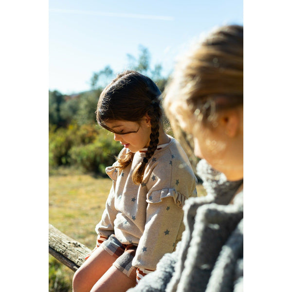 Longsleeve in organic cotton with round collar, wood buttons on chest, camel star print on front and logo print on the back.