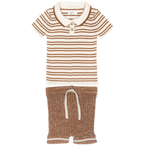 Arthur Top With Bruce Shorts Set | Natural & Tobacco Marl