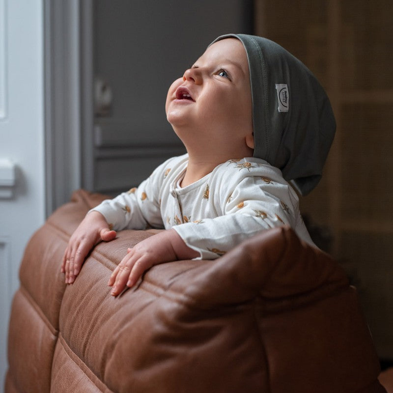 The Californian beanie is the little looze hat that will give your baby a little surf look; to wear as a birth cap or as a trendy accessory until 24 months.