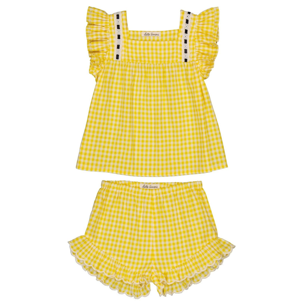 Short in cotton with scallope ruffles at the bottom, elasticated waist