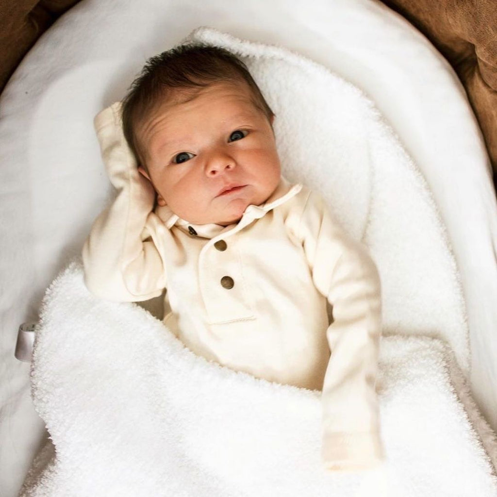 • 3-snap panel for easy dressing, with additional snaps from ankle to ankle for easy diaper changes