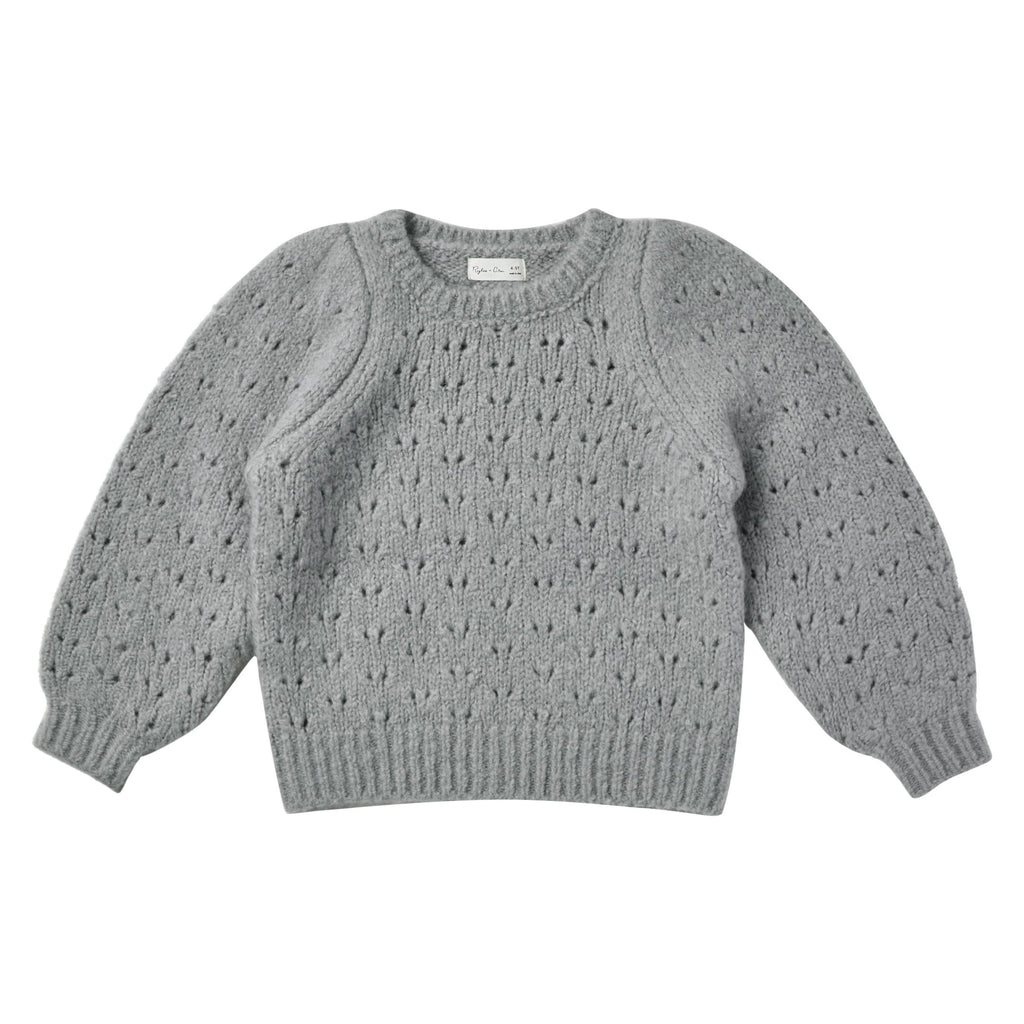 Super soft pullover sweater with blousy balloon sleeves and beautiful intricate pointelle pattern.