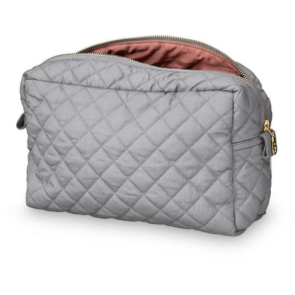 Stylish and practical quilted beauty/toilet purse. The purse is coated on the outside, as well as on the inside for extra protection and water repellent purposes.