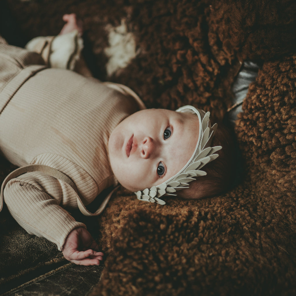 The little angel This charmingly girly headband will add a fairy princess feel to any outfit. The handmade leather details make the headband a unique and stylish accessory for everyday escapades and special occasions. Match with the Bodil Lining to complete the lovely look!