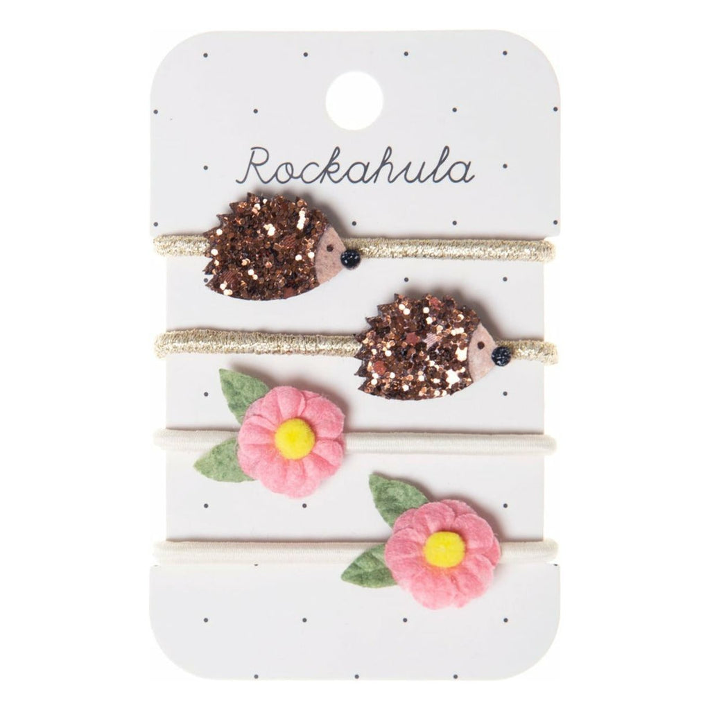 Perfect for little nature lovers, Hattie the Hedgehog is the friendliest hedgehog in our magical forest! This set of four ponies feature two sparkly hedgehogs set onto gold shimmery elastics, and two beautiful bloom flowers with pom pom centres and leaf detailing.