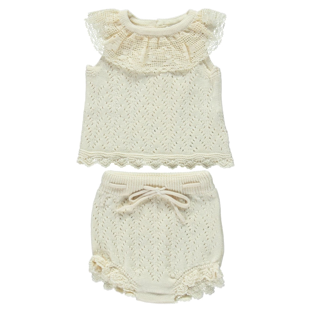 Signature jacquard organic cotton top with lace detailing and  jacquard organic cotton bloomer set.