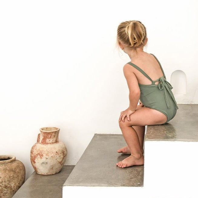 Our Mara One-Piece is designed to fit snug against your child’s body. We recommend choosing a size closest to your child’s age. If your child is between sizes, go up a size to ensure they will grow with their swimsuit.