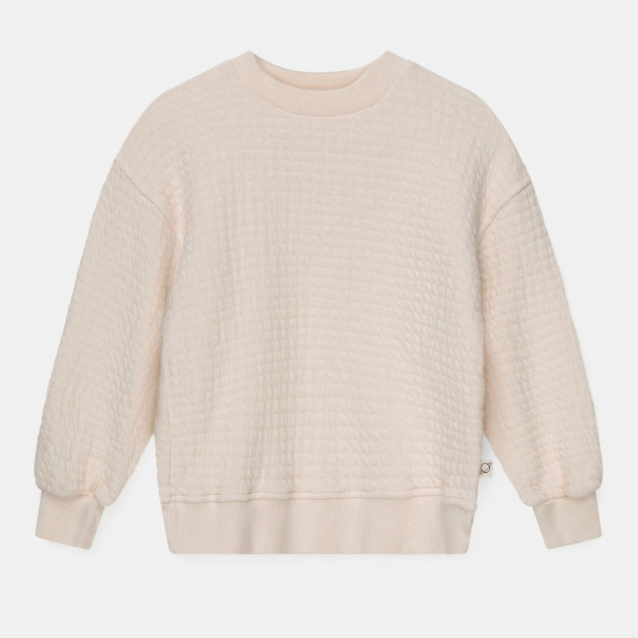 This sweatshirt has a crew neck, relaxed shoulders, wide long sleeves and ribbed cuffs and hem.