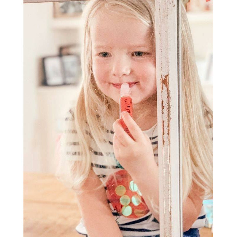 Duo set containing a Bella pink nail polish and a cherry rollerball lip gloss. 100% kids, 100% fun!