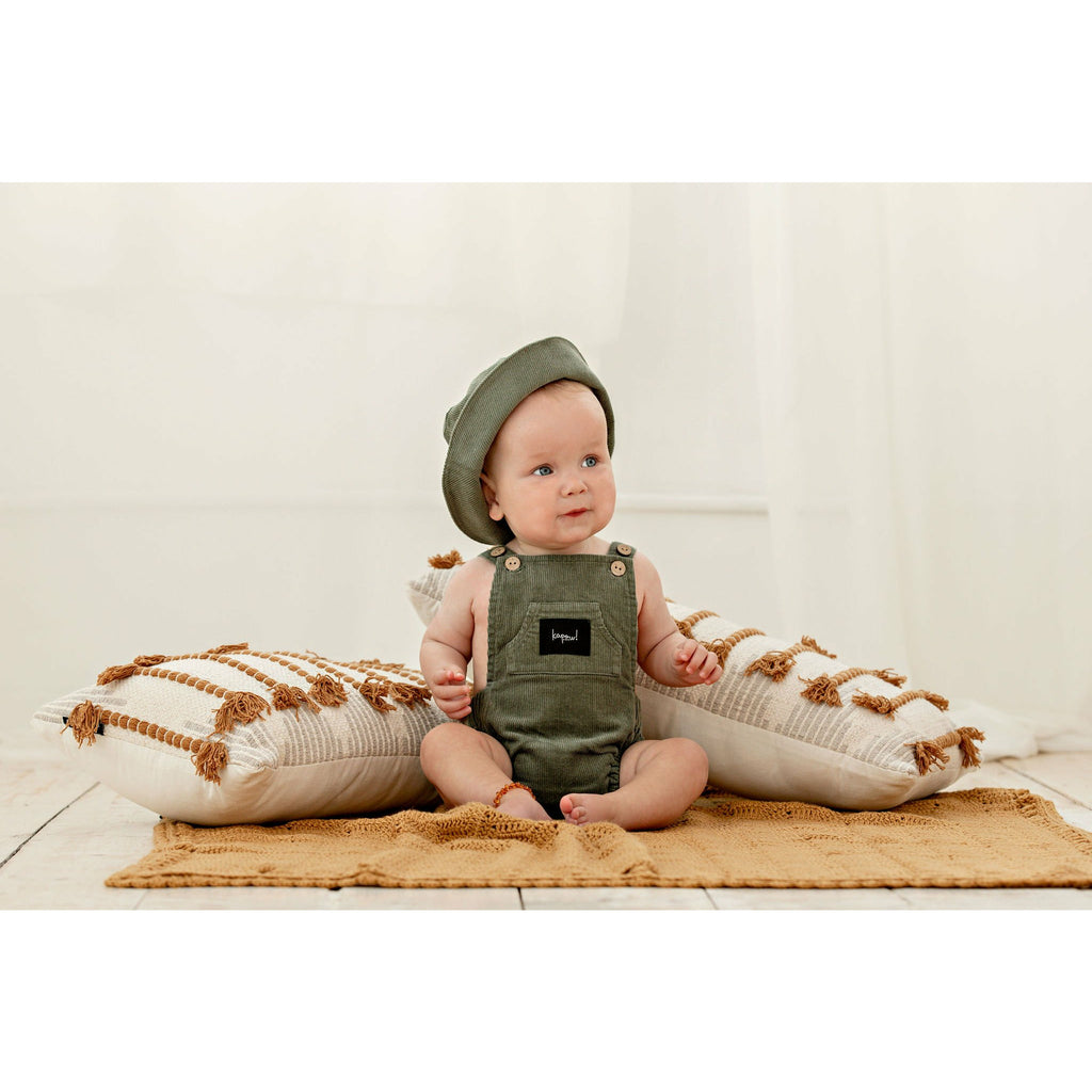 Plain corduroy in Sage green. This playsuit is so cute, it features a little pocket at the front and adjustable overall style straps with coconut buttons.